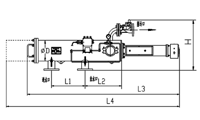 型號 管徑 出入水口 L1 L2 L4 d 濾網面積 處理水量 重量