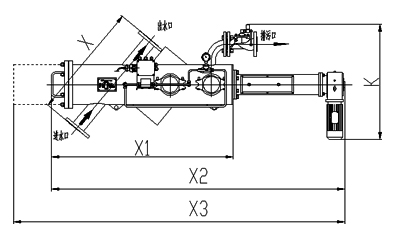 型號 管徑 出入水口 X X1 X2 K 過濾面積 處理水量 重量