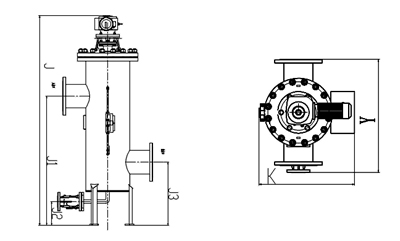 | 型號(hào) | 管徑 | 出入水口 | J | J1 | J2 | Y | K | 過濾面積 | 處理水量 | 重量 |
